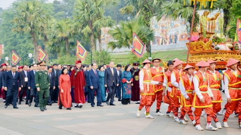 [VOVWORLD] - Party General Secretary and State President To Lam on Sunday attended a grand commemoration of the Hung Kings - the legendary founders of the Vietnamese nation - at the Hung Temple Special National Historical Site.