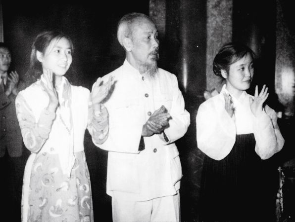 ![]() Uncle Ho took a photo with People’s artist Chu Thuy Quynh (left) and dancers of the Democratic People’s Republic of Korea in the Presidential Palace in 1958. (Archive photo) |