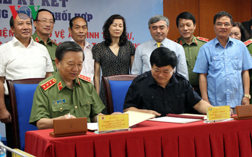 Minister of Public Security To Lam and VOV President Nguyen The Ky signed the agreement on Wednesday at VOV’s headquarters. The two sides will work closely to disseminate Party guidelines and government policies on social order and security.
