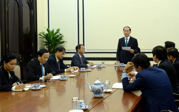 At a working session with the APEC Business Advisory Council in Vietnam (ABAC Vietnam) in Hanoi on Wednesday, President Quang called on the Council to work with the Vietnam Chamber of Commerce and Industry (VCCI), the APEC National Secretariat and relevant ministries, agencies and localities to thoroughly prepare for the APEC Economic Leaders’ Week slated for November in Da Nang city. He agreed with the recommendations of the APEC business community, especially those regarding the liberalization and facilitation of trade, investment and services, human resources, digital economy, and development of micro-, small- and medium-sized enterprises as well as those run by women. On behalf of leaders of other APEC economies, President Quang received ABAC’s report and 20 recommendations to be submitted to the APEC leaders.
