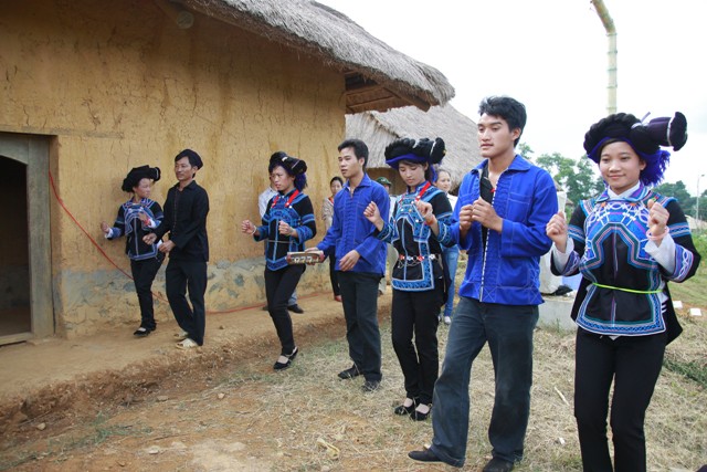A marriageable Ha Nhi man will call at a girl’s house to ask her out. He brings a blanket with him. At the gate of the girl’s house, the boy blankets himself and walks in to meet the girl. If the girl’s parents say nothing, the man takes her out of her house.