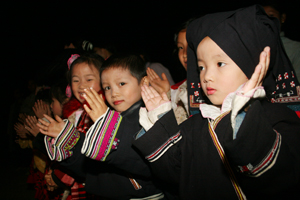 The person chosen to carry the baby should be dutiful, successful, and wealthy. Then the grandmother puts the baby back in the hammock and the relatives lull him. The baby is now recognized as a family member. The grandmother then puts the baby on her back and goes out to sell “cooc mo” cakes to any one she meets. After helping his grandmother sell cakes, the baby is a full-fledged hamlet member. After the ceremony everyone enjoys a meal together.