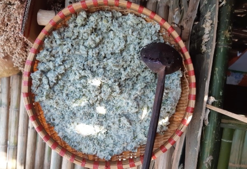 “We wait for the porridge to boil and add cai meo mustard greens. Then we season to taste,” said Cay, a Mong man in Tuyen Quang province.