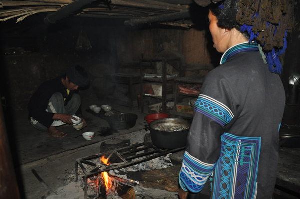 The Ha Nhi have many dos and don’ts concerning the kitchen rock. For example, you may not step on, step over, nor knock against the rock. Guests must be invited by the owners before entering the kitchen. The Ha Nhi are matriarchal and only the women work in the kitchen. The very first thing they do in the morning is kindle a fire to boil a pot of water. It’s a gesture of taking care of the family and showing respect and gratitude to the kitchen genie and the ancestors.