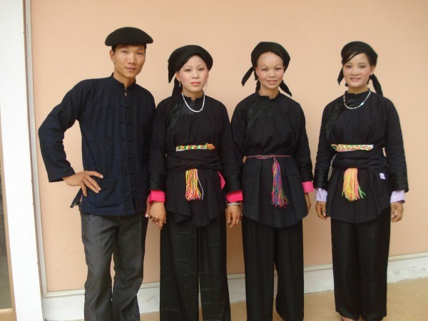 The Nung live in high mountain areas. They weave and dye fabric and make their own clothes. Each Nung clan applies a slightly different decoration to their clothes, but in general Nung clothes are plain. Indigo is the main color, with variations of light blue, dark blue, and blue-black.
