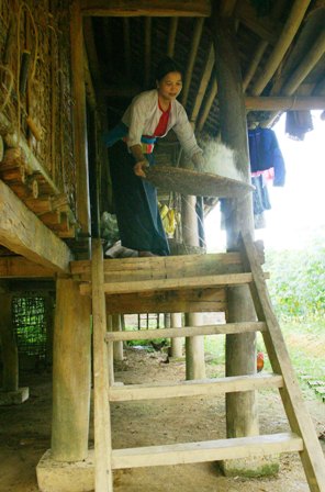 The fire stove, which is considered the soul of the stilt house, is placed in the centre of the house. When winter comes, people gather around the fire to have a meal and talk after a hard day’s work. The house has many rooms for family members. Bui Van Hai of Ai hamlet said: “A newly married couple sleeps in the end room. Unmarried people occupy the middle rooms and the parents are in the front room. Guests stay in a separate room. When having a meal, the elderly sit at the upper area and the children sit at the lower area according to their age.”