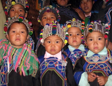 The Ha Nhi live mainly in Lai Chau, Yen Bai, and Lao Cai province. They prefer to live in valleys halfway up the mountain where they have easy access to water for personal use and production. Folklorist Lam Ba Nam says: “The Ha Nhi live in the far north of Vietnam. They have developed typical cultural characteristics including their costumes. Their festivals are shaped by the mountains and their close proximity to nature.”