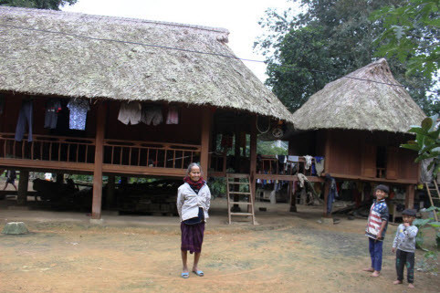 The Pa Ko, whose name means “the people of the mountains”, live in hamlets of 5 to 10 stilt houses made of wood, bamboo, and leaves. People in a hamlet belong to the same clan. A long stilt house has partitions to separate the living space of several households.