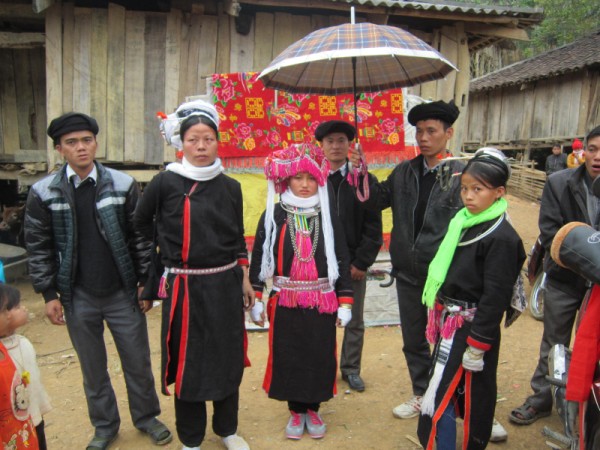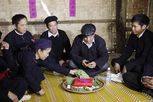 The San Chi of Luc Ngan, Bac Giang, don’t ask the groom’s family to give the bride new clothes for her wedding. While waiting for the wedding ceremony, the bride has to grow cotton, weave cloth, and make a wedding gown for herself. One month before the wedding ceremony, the bride will have farewell parties with her relatives and the older people will deliver dos and don’ts: love your husband and children, work hard, respect your the husband’s family, don’t sit lazily at the front door, don’t wear scanty clothes, and don’t sleep outside the house.