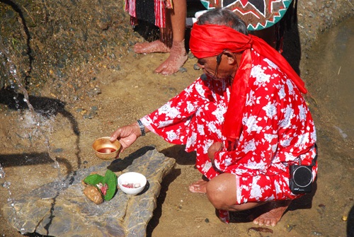 The shaman reads prayers for health and abundant, clean water all year round. They pray to their ancestors to bless their offspring with unity and fidelity. Then all the villagers fetch water home in gourds or papooses. A group of people accompany the shaman to each household to pray for the family. Finally, they gather in their communal house to enjoy a party and dance.