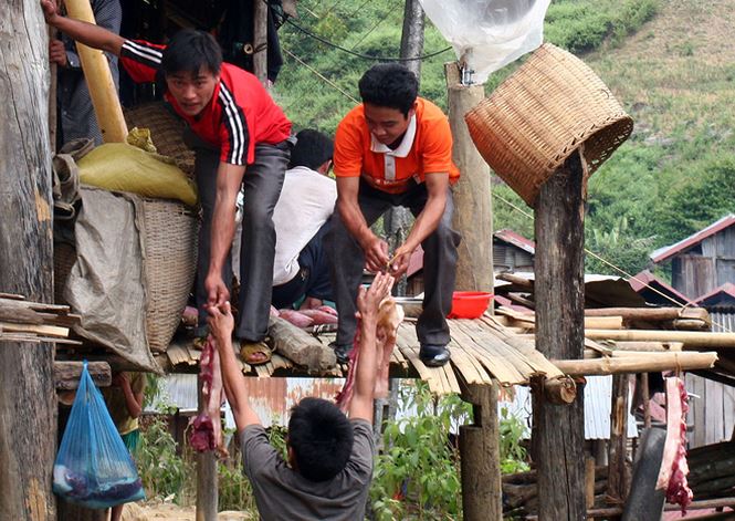 Chin Me Leng lives in Nam Ban commune, Nam Nhun district: “In the afternoon, the groom’s family brings the offering to the bride’s family. At night, the bride’s family prepares a rooster for a ritual. A shaman looks at the shape of the rooster’s head and legs to decide whatever or not to let the groom’s family bring the bride home the next morning.”