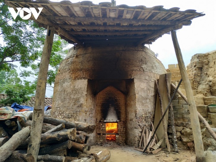 “There is a knack to arranging the tiles in a round kiln to avoid cracking and breaking. We increase the temperature gradually by watching the color of the smoke change from white to yellow. When the color of the kiln walls changes to silver, we decrease the temperature,” Ngoc said.