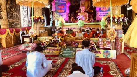 (VOVWORLD) - The Kathina ceremony, an offering of robes to Buddhist monks, is an important event of Theravada Buddhism. Each year, from the 15th day of the 9th lunar month to the next full-moon day, Theravada Buddhist Khmer people in Vietnam’s southern region joyfully celebrate the Kathina ceremony to pray for happiness, peace, favorable weather, and a bumper crop by offering robes and other items to Buddhist monks.