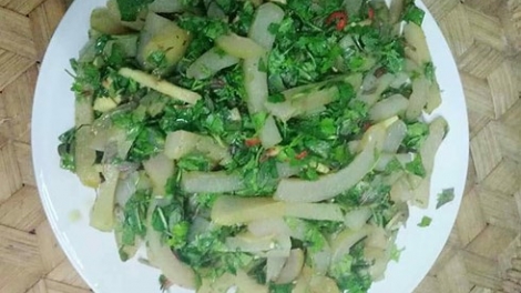 (VOVWORLD) - Moc Chau plateau in Son La province, where the Thai live, is well-known for its fresh air, beautiful flowers, and delicious food. Fermented buffalo skin is a special indigenous dish of the Thai.