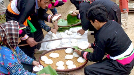 (VOVworld) – The Mong people consider banh day, a kind of sticky rice cake, to be a symbol of the sun and the moon, which are the origin and vitality of humans and every thing on earth. The Mong people in Na Tau commune, Dien Bien province, make these sticky rice cakes during the New Year Festival, Tet, and after the harvest.