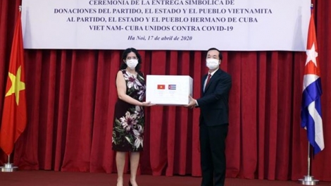 (VOVWORLD) - Minister of Construction Pham Hong Ha on Friday handed to the Cuban Ambassador a letter from Party General Secretary and State President Nguyen Phu Trong and a symbolic gift of 5,000 tons of rice from the Vietnamese Party, government and people to support Cuba’s COVID-19 fight.