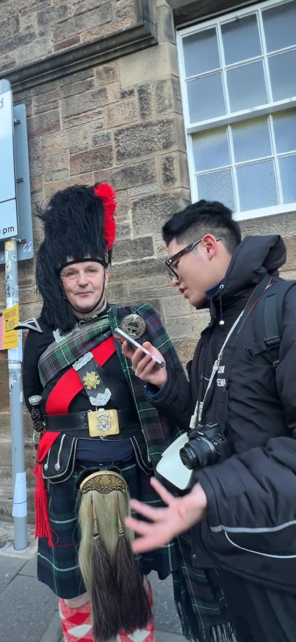 ![]() Bao Minh talks with the street performer in Edinburgh (Photo credit by Bao Minh) |