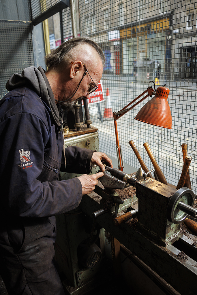 Following the street performer’s suggestion, the group followed the Royal Mile to Kilberry Bagpipes, the only workshop in Scotland’s capital that still makes bagpipes by hand.