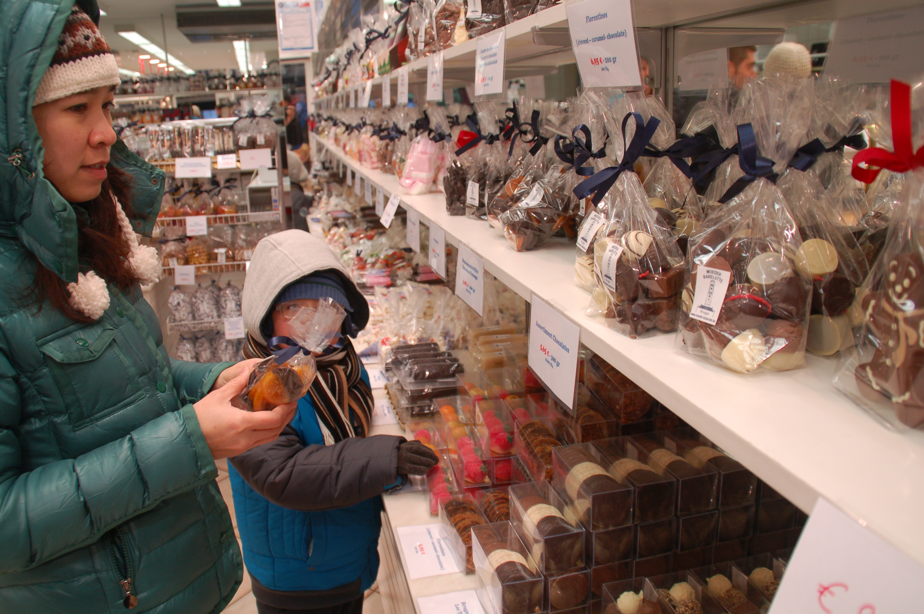 For many years, chocolate has been a high-end product, which is now rated by connoisseurs and considered an international symbol of love. Odile Vandermeeren, who is in charge of the Belgian chocolate booth at the Annual Charity Bazaar 2015 and a chocoholic, introduced the diversity of their products:“We have Bellsola. It is made here but with Belgian original chocolate. And we have Guylian also with a little bit more sugar and funny shapes. We have maybe one hundred types of chocolate in Belgium because we have designers of chocolate like Marcolini or Gala. They are new and young designers so they are doing a lot of new chocolate with new tastes. New tastes and new shapes also, really contemporary chocolate. This is why we have many kinds of chocolate.”