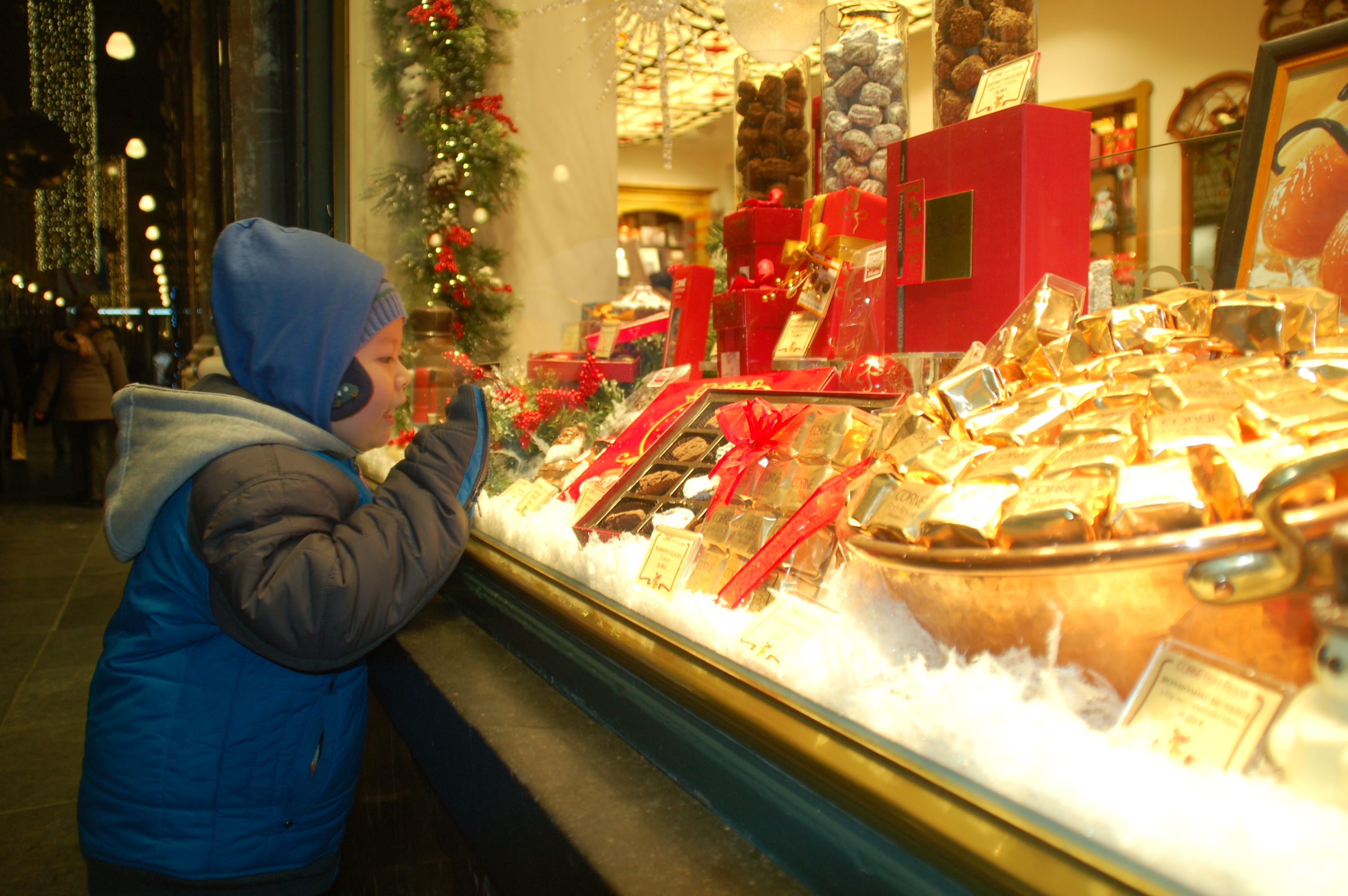 A chocolate shop at the Galeries Royales Saint-Hubert, the famous glazed shopping arcade in Brussels, Belgium. Photo: Ngoc Diep