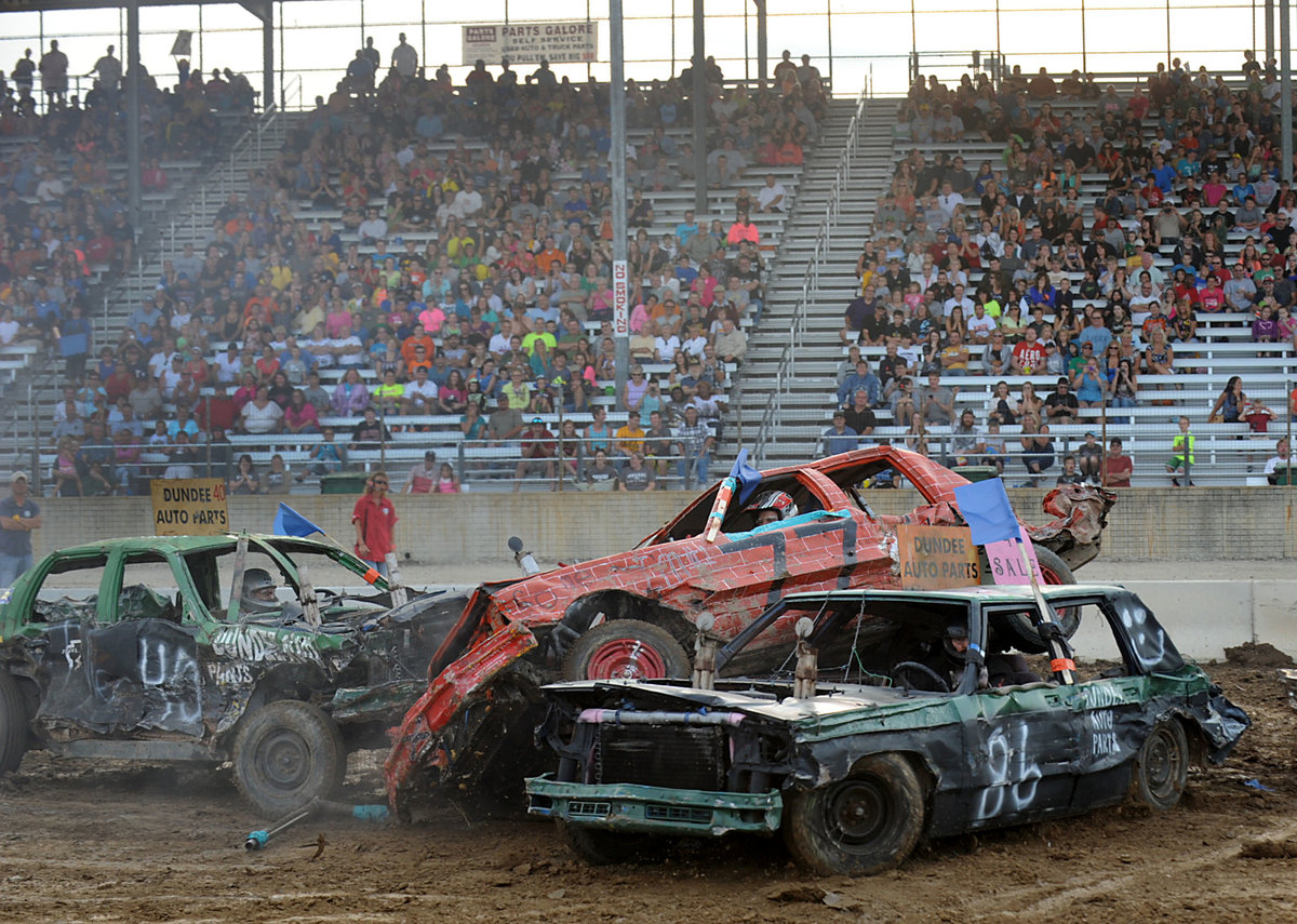 | Cars are crashed at Monroe County Fair Demolition Derby 2015 (Photo: toledospeedway.com) |
