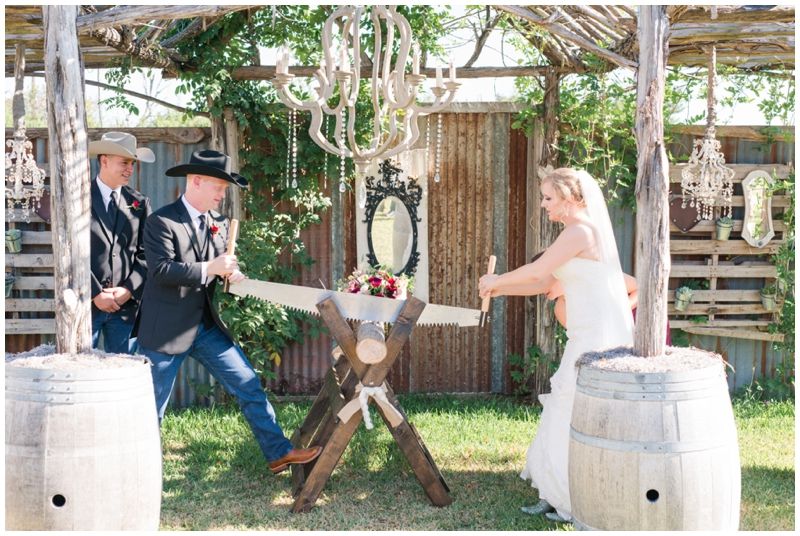 The Germans are rather fond of playing games at weddings, a particular favorite is Baumstamm sägen, to translate it, “sawing a tree trunk”. At the end of the church wedding, the newlyweds exit the church. There will be a log of wood set out on sawhorses in front of the church. The bride and the groom are required to saw through that log. It is a symbol of their teamwork, and how well they work together to complete the task which is supposed to be a sign of how well they will work together at other chores during their marriage.