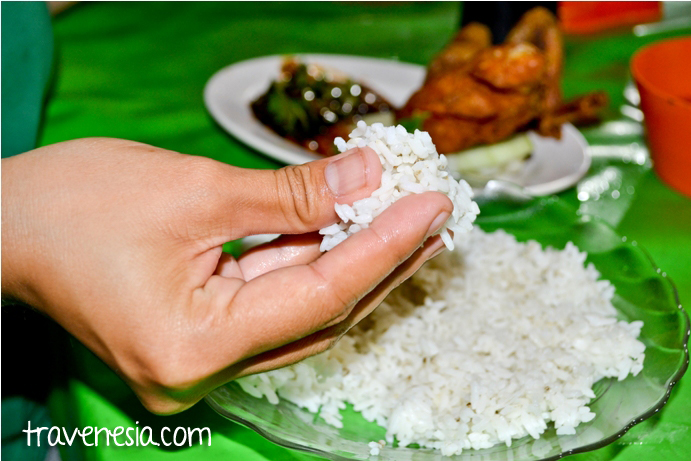 Yes, we have rules for using hand to eat. We use only four fingers, not the small one. We have to cut our nails first and wash hands very carefully. People from other countries may think it is dirty to eat by hand but actually not. We have to use the right hand for eating because we use the left hand when we go to toilet and for other things. We are not allowed to use the left hand to eat. I can’t say it is forbidden but we always advise and tell the children when they grow up to never use their left hand. And for many lefty people, who don’t use right hand, we may tie their left hand behind their back for a while so they can get used to use their right hand. Right hand is used for eating, drinking for offering things for other people.
