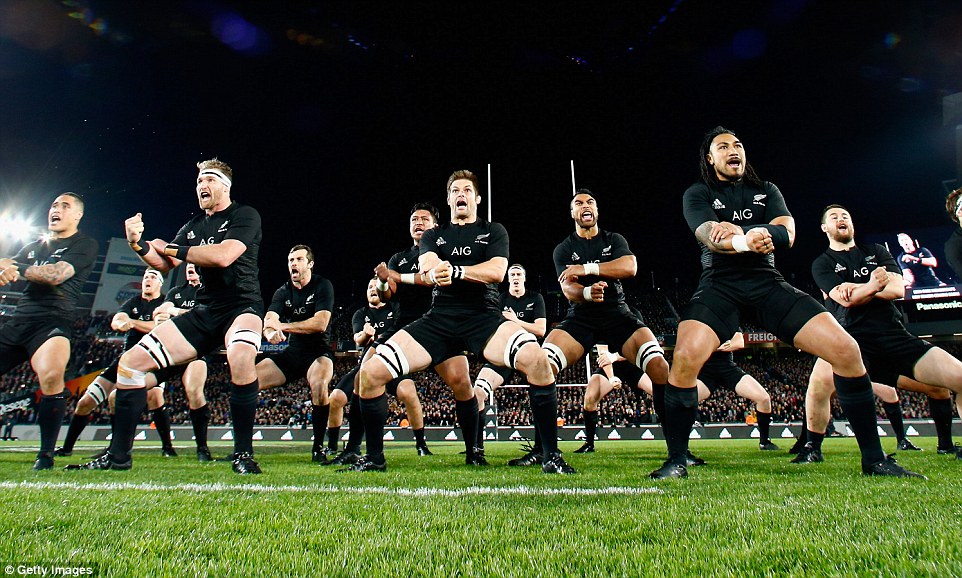 A: They use different styles of actions when they slap their legs, they slap their arms, and they have a very angry face. Hundreds of years ago, the native Maori used it as a dance to scare off colonization. And now we use it today in our rugby games.