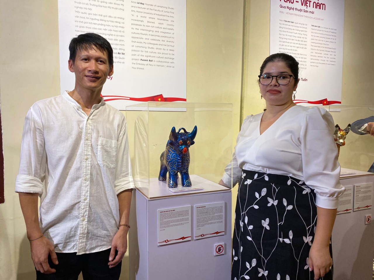 The highlight of the Hanoi exhibition was the presence of bull statues contributed by two Vietnamese artists Le Huy and Tran Anh Tuan. This is the first time the Vietnamese public has had the opportunity to see Peruvian ceramic works and emulations created by two Vietnamese artists.