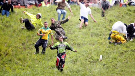Thrills and spills at UK’s cheese rolling race