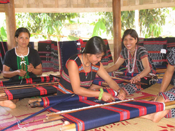 Girls in Nam Giang district learn brocade weaving as children. Though the craft has become less popular, it remains important in local women’s lives. Local people have carried out a number of measures to preserve their traditional craft. Zo Ram Thi Nhung is Chairwoman of Nam Giang District’s Women’s Union:This craft has been restored as part of local people’s lives. We want to preserve it because it is part of our traditional identity”.