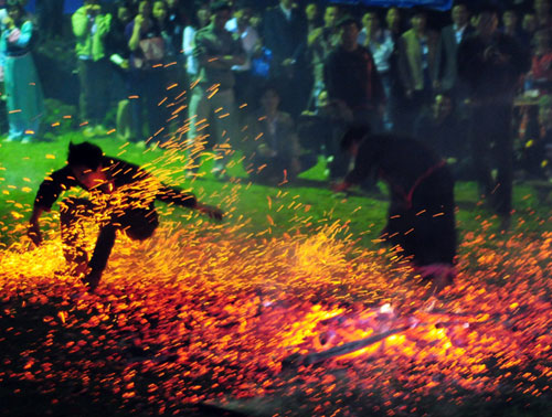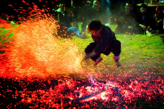 After a bumper harvest, people of the Pa Then ethnic minority groups get together for a fire dancing festival to welcome the new crop. This unique dancing has become part of their spiritual life. Traditionally, only young men who have been trained hard by the wizards can dance on the red hot charcoals. Before dancing, they sit in front of the wizard, praying for permission to dance on fire. The ritual lasts for 2-4 hours.