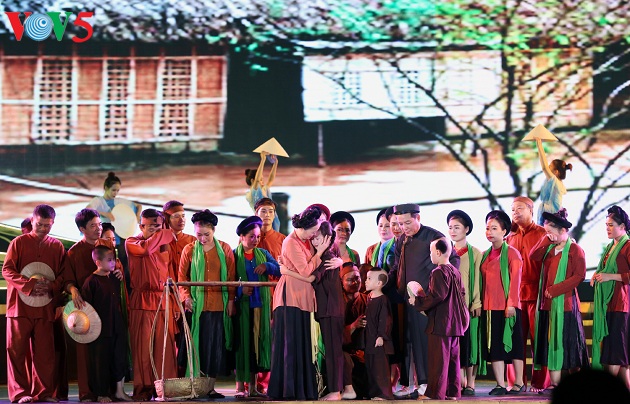Since President Ho Chi Minh left Nghe An province until he died in 1969, he returned home only 2 times. Artists tried their best to make their performances touch audience’s hearts. Emeritus artist Hong Duong, who directed the play “Uncle Ho’s home visit”, told VOV: “President Ho Chi Minh left his village at a young age and returned with white hair. The visit reminded him of his childhood memories and the love of family and neighbors. In this play, we use only music, body movements, and facial expressions, which requires great efforts from us to demonstrate the President’s sentiment toward Nghe An residents”.