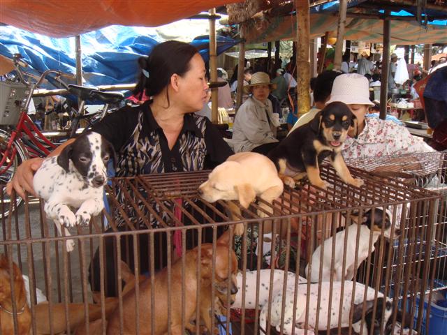 In Hang market, each corner is dedicated to one type of product. The flower corner offers a wide range of domestic and imported flowers. In the ornamental fish corner, customers can find almost any kind of fish. The bird corner is the noisiest spot. The most popular corner in the market is the one that sells pigs, dogs, cats, goats, chickens, ducks, and muscovy ducks.