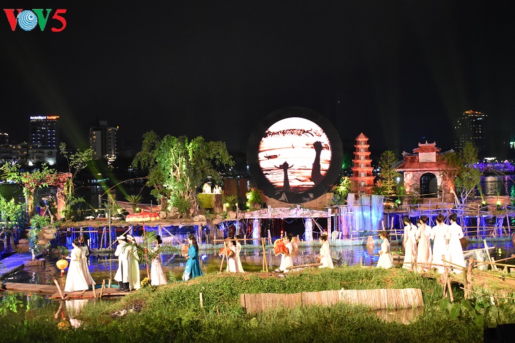 The spectacle is like a watercolor painting which depicts Hue’s watery landscapes and its familiar rural images, like the corner of a small fishing village, a banyan-tree, a water well and the village yard.