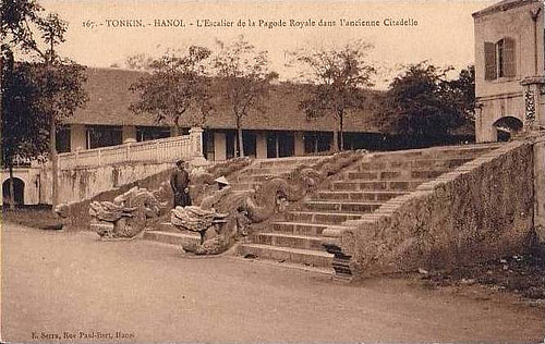 The palace was almost entirely destroyed and only its grounds remained. The grounds are 57 meters long, 41.5 meters wide and 2.3 meters high. Its steps were built with green stones. Stone dragons in the Palace are its only evident remains. Four stone dragons which divided the staircase leading into Kinh Thien palace into three were carved in 1467. The dragons are typical of sculptures in the Le dynasty. Made from green stone, the dragons all have a rising head with round bulging eyes, long branched antlers, manes flowing backward, and a half-open mouth holding a gem. The body of the dragons is serpentine with their tails getting smaller and their backs having cloud-shaped scales. The stone dragons of Kinh Thien palace partly reflect how gigantic the palace was. Painter and researcher Nguyen Duc Hoa says:“The palace was the venue for major royal ceremonies and rituals. That’s why its architecture and decoration were outstanding. The architecture of the palace was destroyed but the stone dragons carved in 1467 under King Le Thanh Tong’s reign show that Vietnamese Kings mobilized skillful artisans to create such outstanding creations”.