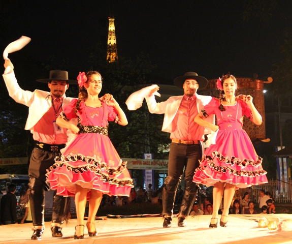 The 9 days of the festival are the most exciting days of the year in Hue. Art performances and cultural activities this year were held throughout the city, in the Imperial Citadel, on outdoor stages in numerous streets, and nearly rural areas. Vietnamese artists and 68 foreign art troupes including Bati Holic from Kyoto, Japan, Gugak from the Republic of Korea and Guadalajara from Mexico delighted the audience with beautiful traditional dances and folk songs of many nationalities. Cristian Andress is a dancer of the Los Angeles Art Troupe: "We have to thank the Vietnamese government in the festival to come and you know, performing here our culture and traditional dances. So you guys can see exactly what we do. Vietnamese people are very joyful. They showed us a lot of love so we tried to do the best, so they can see us. You’ve got a lot of people and dancers from South America: I’m from Chile, the guys you see over there are from Colombia. You’ve got more knowledge from others".