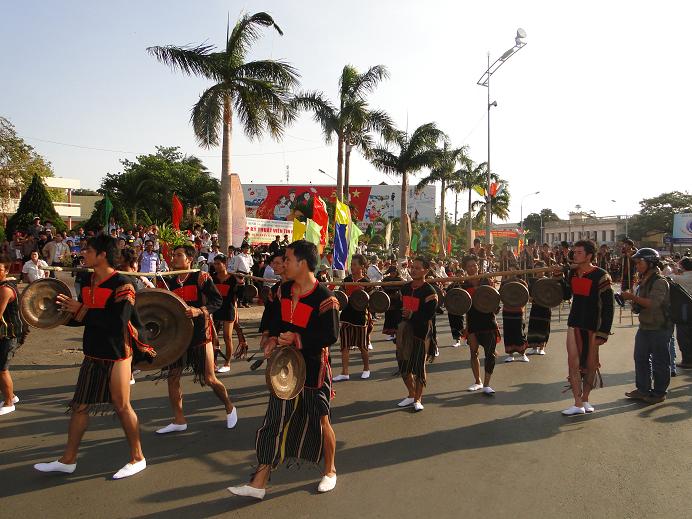 Members of the Young Gong Troupe in Pu Hue village, Ea Ktur commune, Chu Quynh district, Dak Lak province have for the past few days been rehearsing for a local Culture-Sports event to be held next month. Y Sun E Ban is a member of the troupe: “We all learned gong playing just 2 months ago but we learned very fast. We have been invited to perform gong three times, once in the district and twice in Drai Bhang commune”.