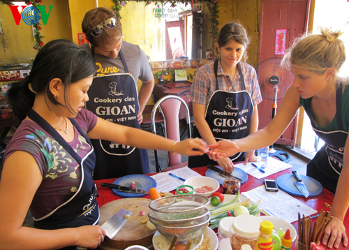 | American tourists learn how to cook Vietnamese noodle |