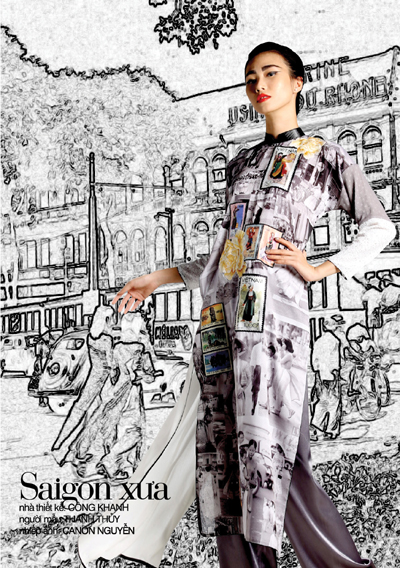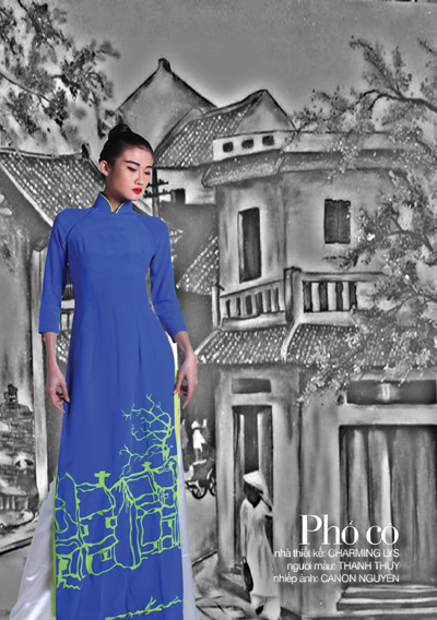 The traditional Vietnamese long dress has changed a lot since it was created. During the 1930s and 1940s, the design of the long dress did not change much but the colour became brighter. In 1939, tailors made long dresses with heart-shaped collars or banded collars with a bow. The nipped-waist style appeared in 1950. In 1960, the style of the long dress changed a lot: the fringe of the dress was levelled, its flap was extended to the ankle, and its collar was cut in a round shape. In the early 1970s, mini-long dresses appeared with short small flaps, which sometimes came to the knees. The waist was not nipped but the chest and sleeves became smaller. The trousers were long with 60-cm cuffs. Fashion designer Minh Hanh said fashion designers always try to give traditional long dresses a new style using new materials and new patterns: “Everybody thinks the long dress must be soft, light and graceful. But now thick materials like canvas and synthetics are used. The designers print patterns on them, and make long dresses with laser cutting techniques”.