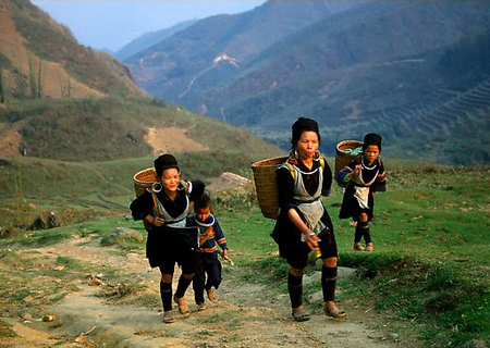 Cat Cat village is 2 km from the center of Sapa town in Lao Cai province. The pathways in Cat Cat are narrow and winding. Passing through the village gate, visitors first stop at a souvenir shop near the gate. This is an ancient village of the Mong ethnic minority, so the local traditional crafts have a long history, an aspect that attracts a lot of tourists. Beautiful embroidered handkerchiefs, colorful dresses, and elaborate silver rings are made by skilled Mong artisans.