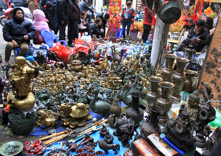 Hanoi has always been a venue of talented craftsmen. They came to Hanoi to ply their crafts setting up 36 trade guilds centered in 36 different streets. Over centuries, the artisans who migrated from rural areas, have brought to the city their traditional crafts with outstanding techniques. Through many ups and downs, many streets in the Old Quarter still retain their traditional trade. For example Hang Ma street still sells votive papers, Hang Thiec or “Tin” street specializes in tin items, Hang Dong or “Bronze” street casts and sells bronze products while silver jewelry can be found in Hang Bac or Silver street.