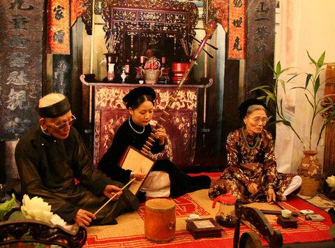 Ca Tru is a unique type of folk music in Vietnam that dates back to the 15th century. Ca Tru folk singing has a strong influence on people’s cultural and social life in the Red River Delta. Throughout history, Ca Tru has retained its vitality because of its uniqueness in Vietnamese culture. On October 1, 2009, Vietnamese Ca Tru folk singing was officially recognized by UNESCO as an intangible cultural heritage of humanity in need of urgent protection. The recognition means that Vietnam needs to make a greater effort to preserve and promote this heritage. Folklore Researcher To Ngoc Thanh says: “In the early years of this century, Ca Tru is on the verge of falling into oblivion. Compared with other art genres, Ca Tru is in a fragile situation losing its importance in people’s life. So, it is not easy to bring it back to the contemporary life, especially with the popularity of Karaoke and MTV. We will begin by restoring the popularity of Ca Tru among middle-age and elderly people. We need an audience first and then we will introduce its attraction to the younger generation”.