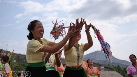 (VOVworld)-Con ball throwing is a popular folk game many the ethnic Thai ethnic minority people in Vietnam’s northwestern region. While playing the games, Thai girls and boys have a chance to find their partners and express their love.