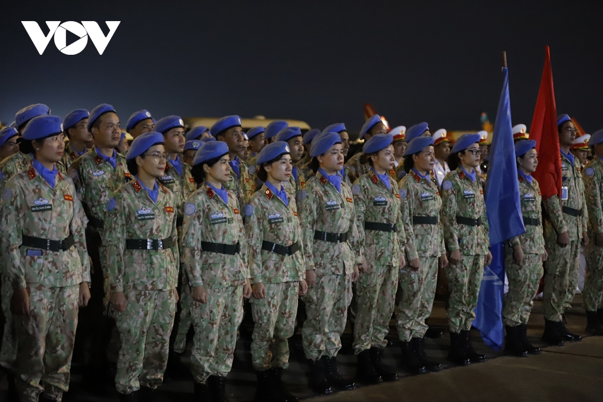 The blue beret medical soldiers of Level 2 Field Hospital No. 5 have returned to the welcome of their relatives and colleagues. (Photo: Ty Huynh/VOV) |