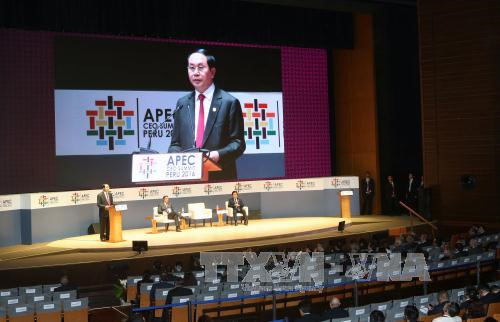 (VOVworld) – President Tran Dai Quang has said hosting APEC Year 2017 is a priority in Vietnam’s foreign policy. Mr. Quang told delegates at the just-concluded APEC Summit in Peru that Vietnam will to its best to fulfill this role, contributing to APEC’s development and prosperity. Vietnam, as host of the next APEC Year, faces a golden opportunity for its strategic development.