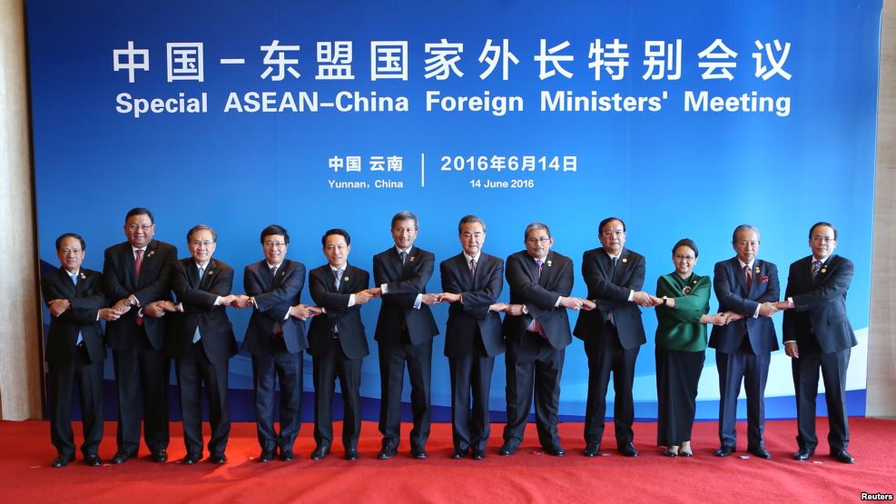 | Representatives of China and ASEAN have their picture taken during the Special ASEAN-China Foreign Ministers' Meeting in Yuxi, China on June 14, 2016. (Photo: Reuters) |