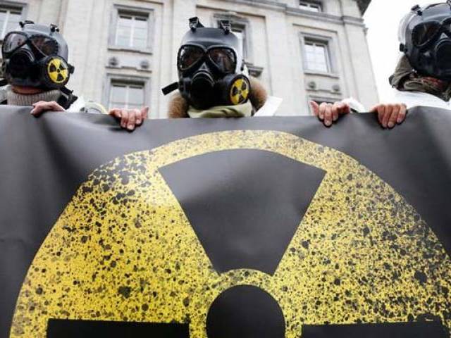 ![]() Activists wearing masks and protective suits protest against, what organisers said, the lack of safety of Belgian Nuclear power plants outside the Belgian Interior Ministry in Brussels, Belgium PHOTO: REUTERS