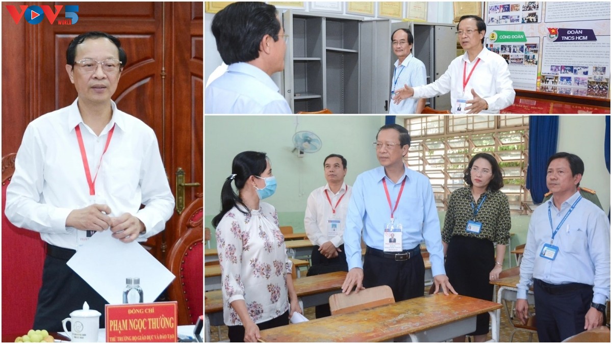 Deputy Minister of Education and Training Pham Ngoc Thuong oversees test sites. (photo: VOV) |