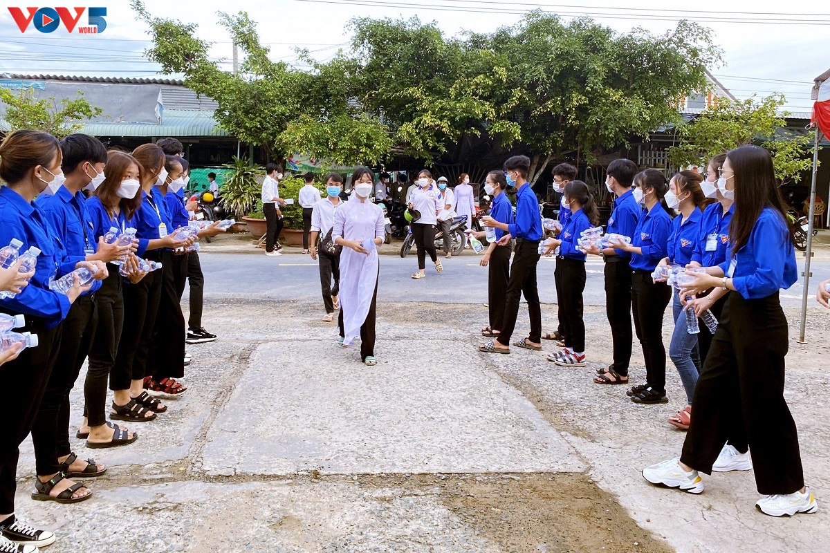 Youth Union of Tra Vinh province raises fund to buy bottled water for the examiners. (photo: VOV) |
